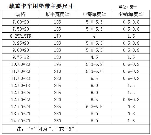 轻型卡车用垫带